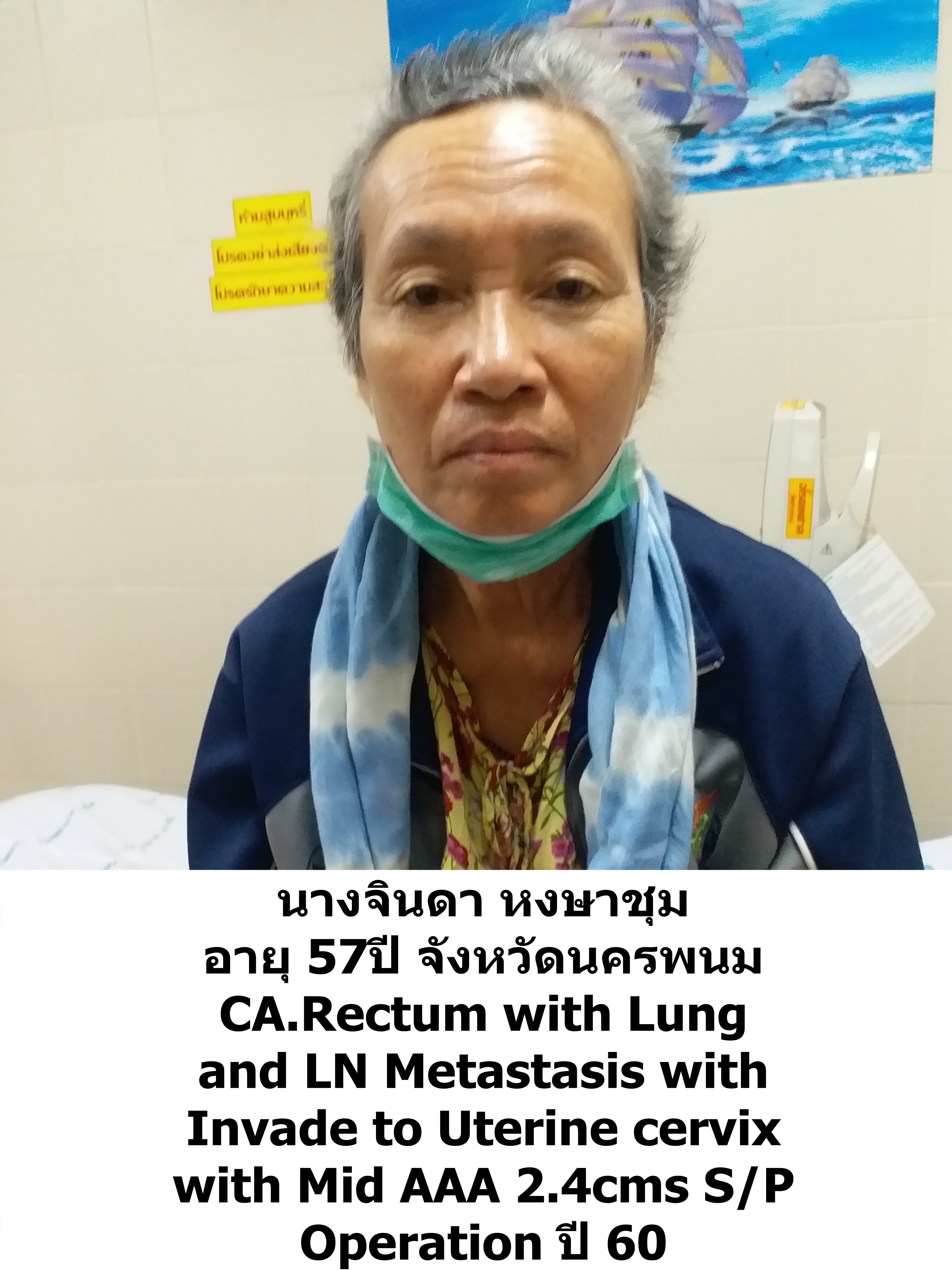 อายุ (Age) : 63 ปี 7 เดือน 21 วัน   การวินิจฉัยโรค  CA Rectum    ระดับผู้ป่วย  Stage 4