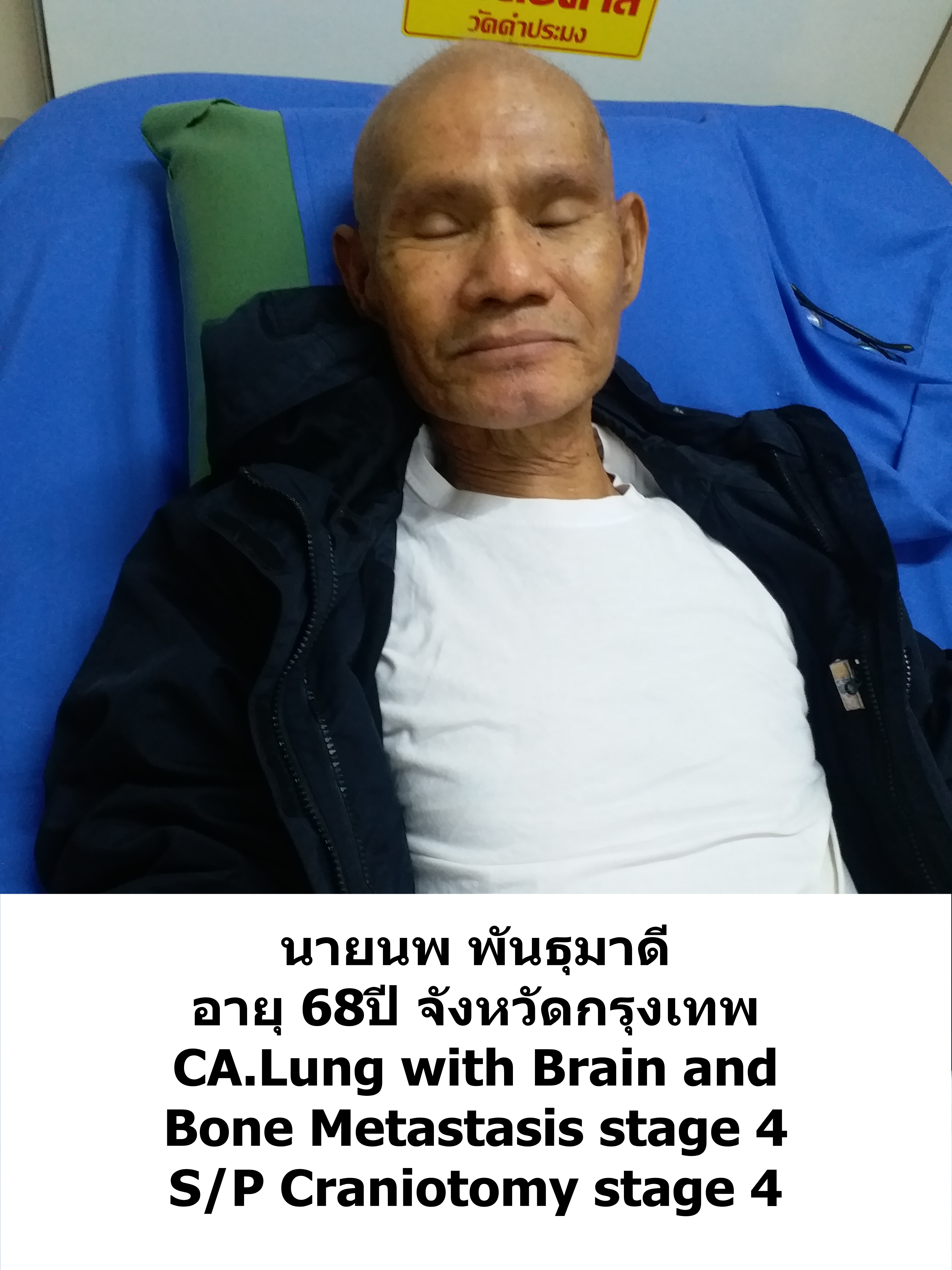 อายุ (Age) : 74 ปี 0 เดือน 16 วัน   การวินิจฉัยโรค  CA Lung    ระดับผู้ป่วย  Stage 4