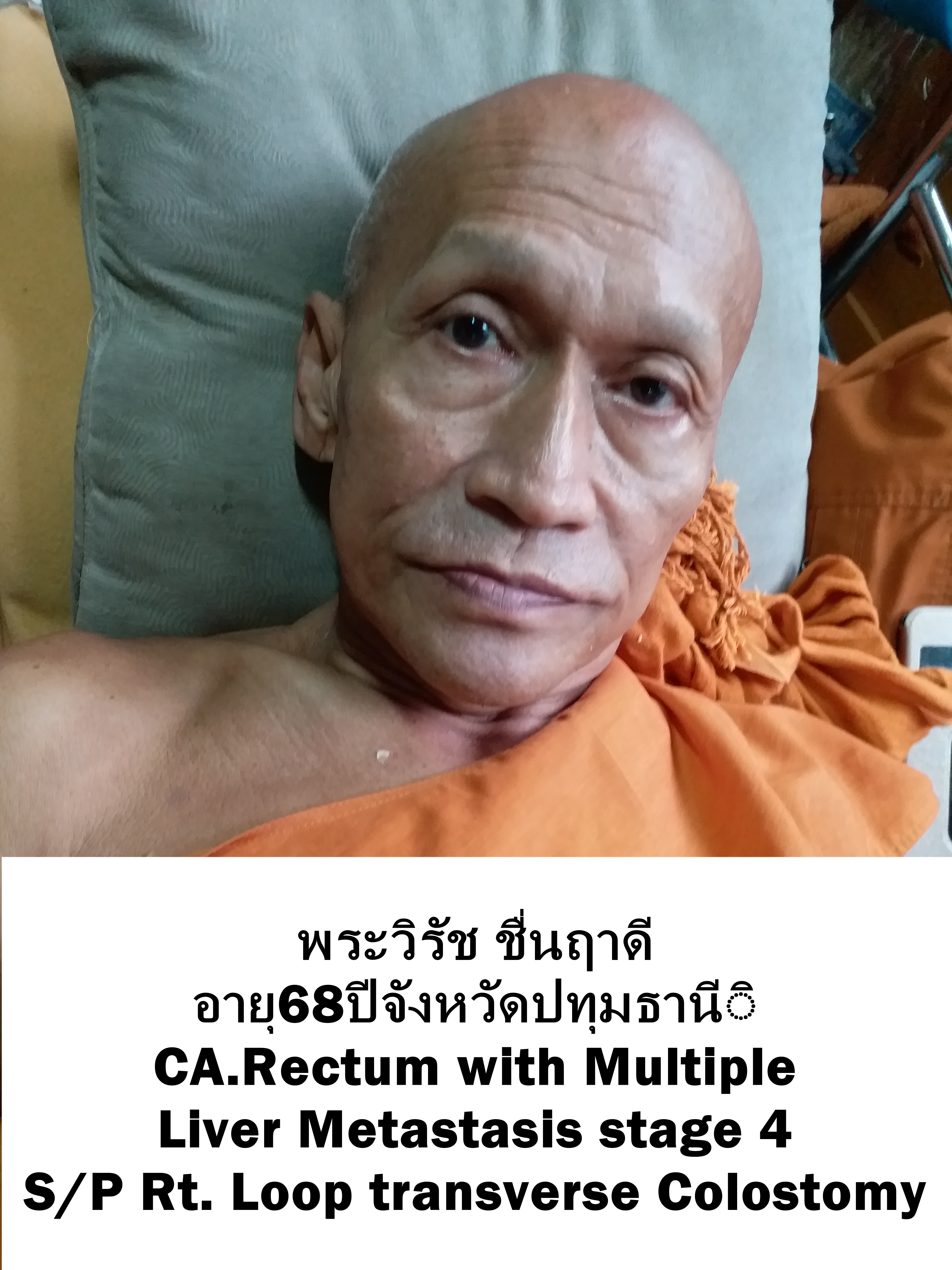 อายุ (Age) : 73 ปี 9 เดือน 2 วัน   การวินิจฉัยโรค  CA Rectum    ระดับผู้ป่วย  Stage 4